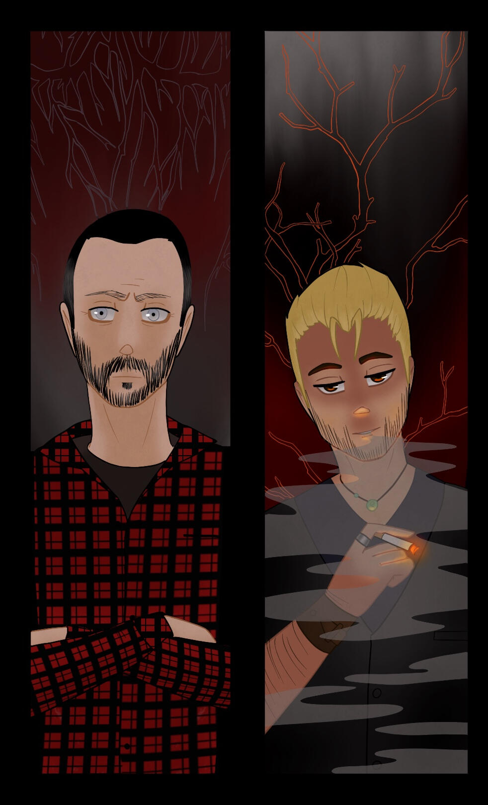 Taken from an ask on Tumblr:I deleted some information from my carrd because I thought it was getting too cluttered and confusing and turns out that I just made things worse... So, I apologize, thank you so much for your ask, which I will answer now, but also I might have to take another look at my carrd to see if I can just... fix that.Infodump start! Main timeline!I will skip over the first few generations of the Graves family, but the essential information is that two adoptive brothers settled into the recently-independent United States and began their own very strange family. They adopted two sons, raising them together, who then would go on to do the same, on and on and on until you reach Victor Graves.(Yes, this is pretty cult-y but without the religion.) (Also sometimes they adopted three sons just in case something happened to one of them.)Victor had a pretty rough life due to his abusive father. I'll skip the details, but the man killed his younger brother, his youngest son and his first grandson in very quick succession, prompting Victor to, huh, make sure his father made a expeditious one-way trip to the graveyard. So, at this point, the Graves are Victor and his younger brother Colin.At this point, and in a sort of 'give the depressed man a dog so he doesn't kill himself' situation, Victor adopted Adrian, his eldest son, to keep Colin busy and with a reason to live. A few years later, Victor was meant to adopt another son, but he couldn't bring himself to separate twins, and that's how Ace and Aaron joined the family.As to how Aaron got like that, the thing is, he was always like that. He's a sociopath, has been since birth (a combination of genetics and a bad mother). Victor's greatest failing as a parent was never getting Aaron therapy, even though the boy was very clearly off. (Everyone in this family needs fucking therapy.)Ace, on the other hand, was a sweet angel who perhaps liked insects a little too much, but compared to Aaron, yeah, he was a saint. In an incident that I hesitate to describe in detail without five hundred trigger warnings on the post, let's just say Aaron hurt his twin really badly when they were 17. And when Ace asked for help from their older brother, he was ignored. So Ace ran away, cut contact.Joined the military. Got a degree. Got a fiancé. Got blown up.He was flown back to the US, and through Victor pulling some strings, he got sent home to his family, who he hadn't seen in a few years. This is when Aaron struck. Taking advantage of Ace's vulnerable state (having lost a lot of himself, both physically and mentally at that point), he convinced everyone that it'd be better if Ace came to live with him, a couple of hours away from the family cabin.The Graves' history is a study in the bystander effect.Both Victor and Adrian felt something was off (Adrian knew), but they did nothing. And so Aaron took over. He'd had a few years to learn how to pretend to be normal better. The mask came off the moment the door closed behind them. He convinced Ace that the family hated him, and at the same time told everyone else he didn't want to see them. Isolation.While Ace was in the military, Aaron had a pretty wild life: alcohol, sex, drugs and murder (which actually corresponds to my first blog, before I rewrote most of the lore).(Can you imagine the twins used to love each other?)He's had time to learn how to hurt people without getting caught, and to make connections with all sorts of people.And this is a condensed version of the lore! Missing details, but I think I got the essentials down. Wow, I really should work on my carrd, I really wouldn't want to lose out on interaction because my About section isn't good enough. Thank you very much for the ask, I'm always happy to ramble on about my boys!